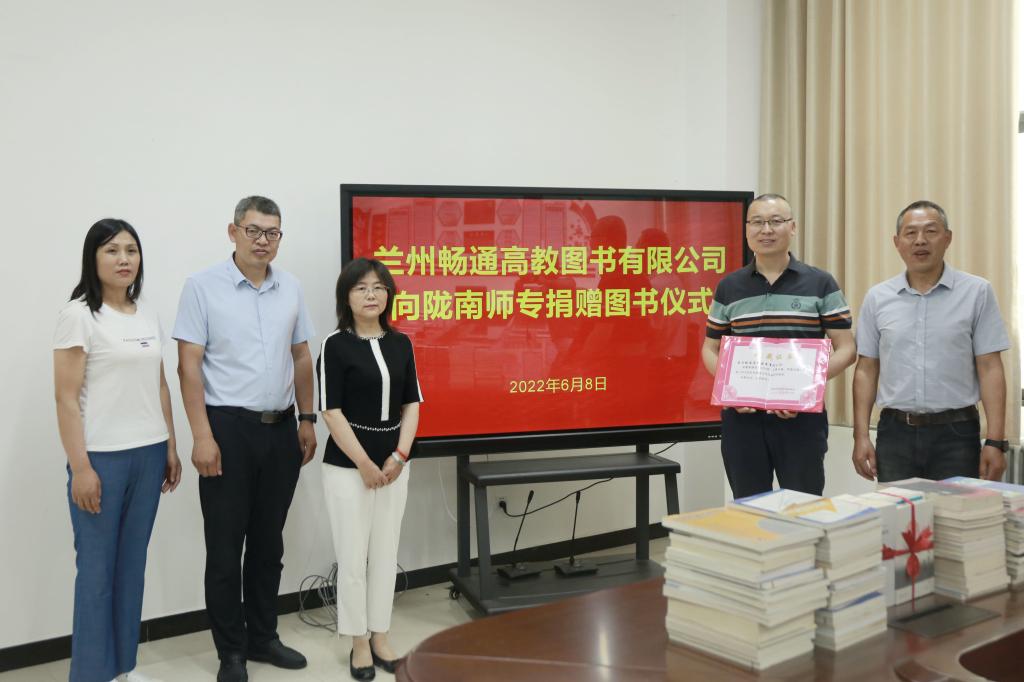 6月8日,兰州畅通高教图书有限公司图书捐赠仪式在beat365图书馆三楼会议室举行。兰州畅通高教图书有限公司代表贺双虎,校长李艳红,教务处、图书馆等部门负责人及工作人员参加了捐赠仪式。