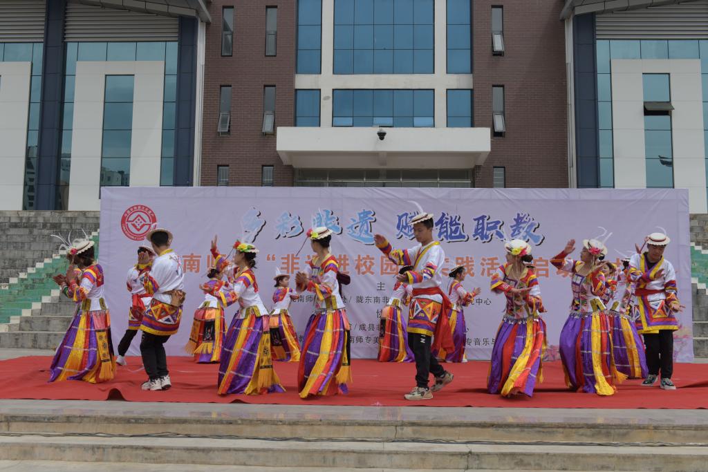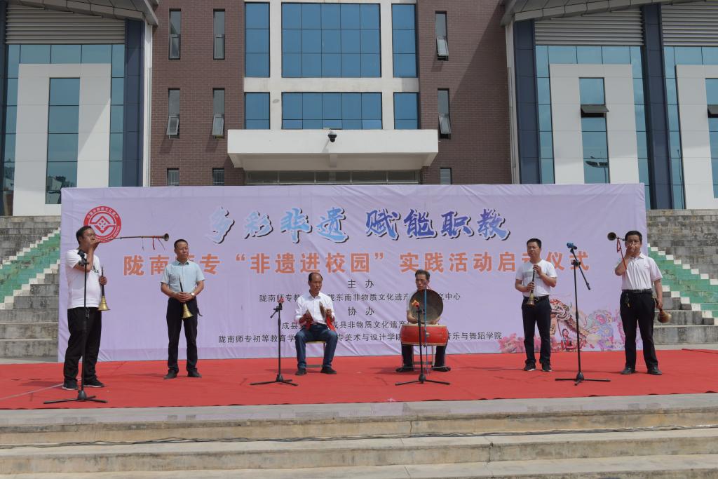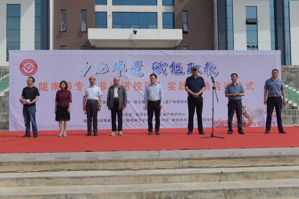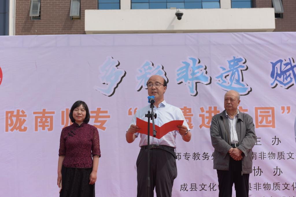 在活动启动仪式上,陇东南非物质文化遗产传承中心主任、校史馆负责人说,非物质文化遗产是中华优秀传统文化的重要组成部分,陇南作为集“丝绸之路”、“藏羌彝文化走廊”、“陇蜀古道”、“茶马古道”等一体的、交错分布、相互依托的、立体的文化走廊,非物质文化遗产异彩纷呈。学校积极展开“非物质文化遗产进校园进课堂”活动,逐步加强非遗相关专业内涵建设和课程建设,提高人才培养能力,积极与地方文化和旅游部门合作,围绕课程建设、社团建设等方面组织开展包括戏曲、民族民间美术、民族民间舞蹈等非遗的传承实践活动,推动中华优秀传统文化创造性转化、创新性发展,让非遗走进课堂,引导学生树立正确的祖国观、民族观、文化观、历史观。