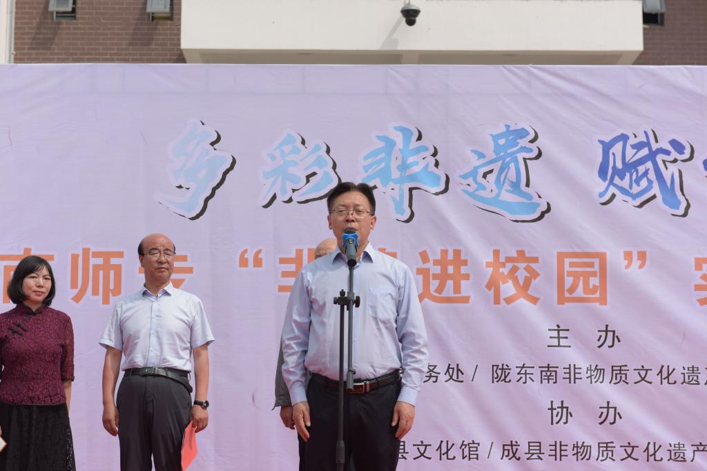 成志杰说,陇南师专是培养教育人才的重要平台,本次举办的“非遗进校园”活动对文化遗产的传承作用意义重大,每个人要以对国家和历史高度负责的态度充分认识文化遗产传承保护的重要性,进一步增强责任感和紧迫感,切实做好文化遗产的传承和保护工作,从被动传承保护向主动传承保护,从单一保护传承向全面保护传承保护,切实加强对文物传承保护工作的重视程度,使文化遗产传承保护工作成为全社会的共识,成为全体师生的自觉行为。