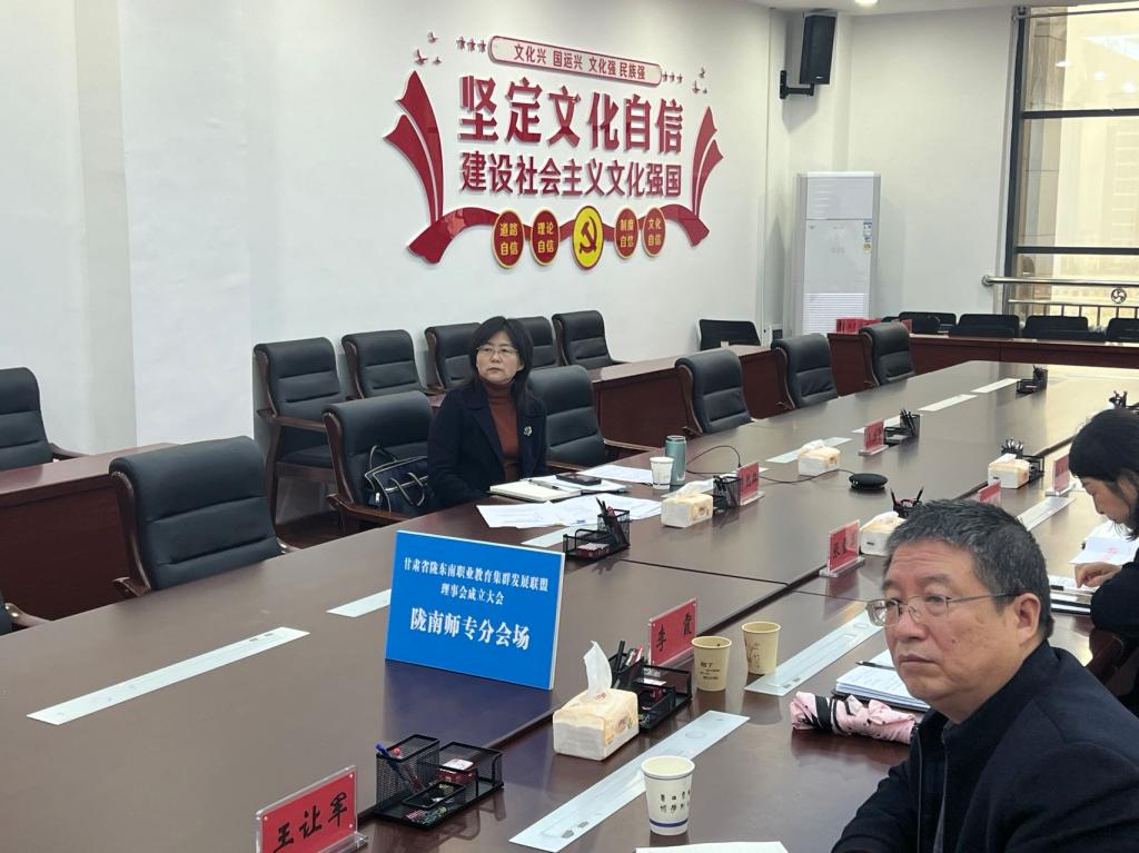 11月11日,甘肃省陇东南职业教育集群发展联盟理事会成立大会在甘肃省林业职业技术学院举行,beat365在图书馆九楼会议室设立分会场,校长李艳红及相关部门、学院负责人通过腾讯会议线上参会。