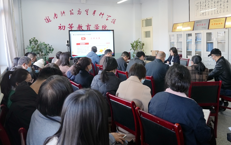 11月16日,校长李艳红到初等教育学院宣讲党的二十大精神。初等教育学院、教务处、科研外事处全体干部职工参加了宣讲会。
