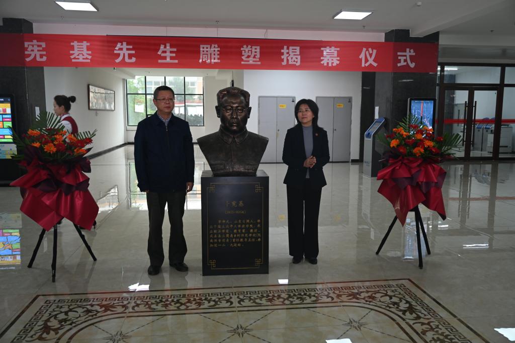 余学军、李艳红共同为卜宪基先生雕塑揭幕。