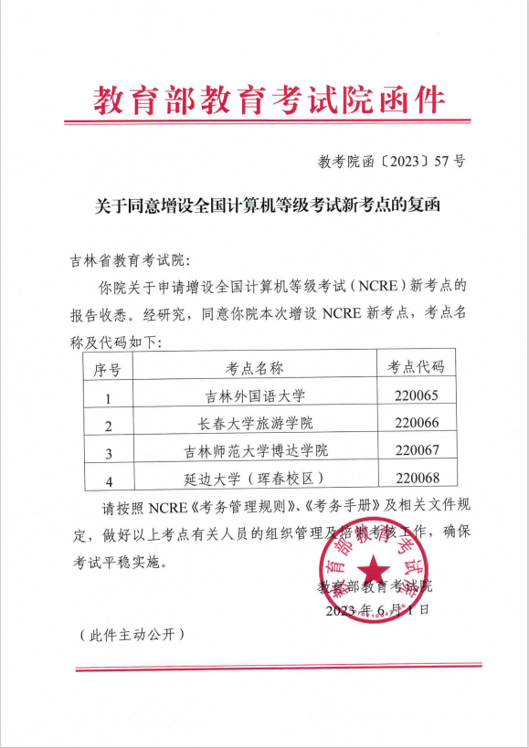 6月1日,经教育部教育考试院批准,金沙官网成功设立全国计算机等级考试考点。