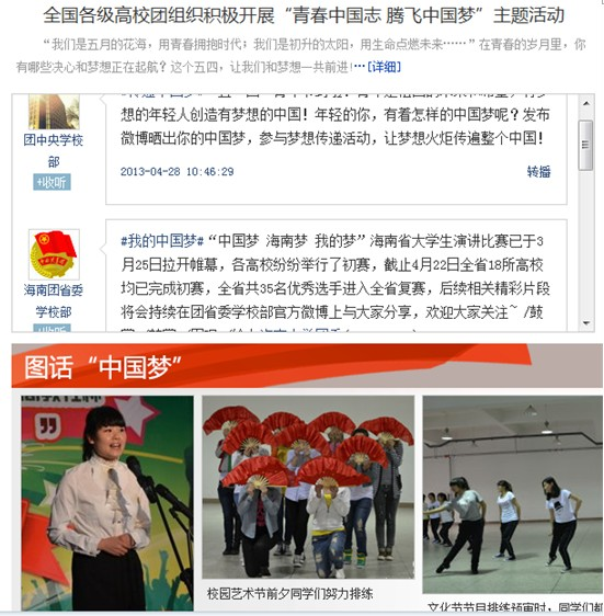 在当天的活动中,学生们踊跃参与,纷纷发布微博晒出自己的中国梦,参与梦想传递活动,让梦想火炬传遍整个中国!