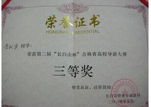 旅游管理分院姚冬馨荣获第二届“长白山杯”吉林省高校导游大赛优秀奖。
