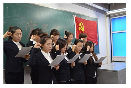 2013年6月18日中午,旅游管理学院预备党员宣誓仪式在教学楼239室庄严举行。出席此次仪式的领导有旅游管理学院党总支书记、副院长高阳,学院学生第一党支部书记、办公室主任凤龙,学院学生第三党支部书记、团委书记倪姝囡,教工党支部书记王伟光,学院学生第二党支部书记张晓薇同志等。本次宣誓仪式在庄严的国歌中隆重拉开帷幕。随后,张晓薇老师宣读了预备党员宣誓名单;预备党员全体起立,在党旗下庄严宣誓,张晓薇老师担任领誓人,倪姝囡老师监誓。接下来,高阳院长宣读了优秀学员名单,与会老师为优秀学员颁发党校合格证书并致以祝贺。
