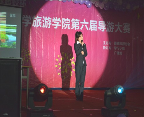 为丰富我院学生校园文化活动,增强学生实践能力,我院第六届导游风采大赛隆重拉开帷幕。本届大赛共有376名学生报名参赛。经过初赛和复赛共20场比赛的激烈争夺,最终共有10名学生以其优异的表现脱颖而出,进入最终的决赛环节。