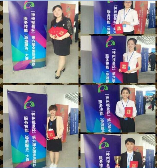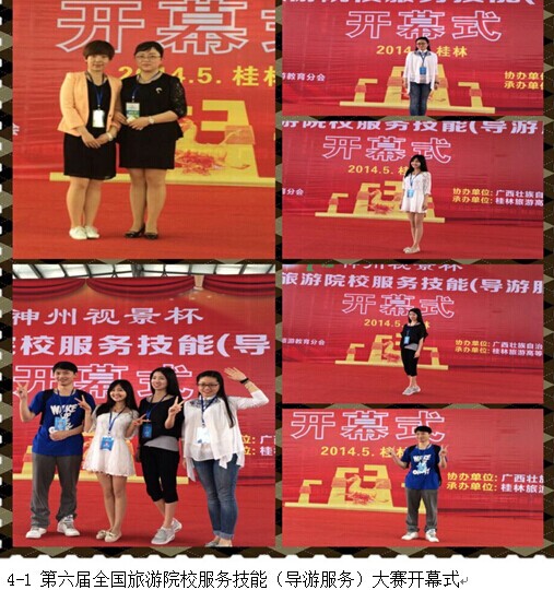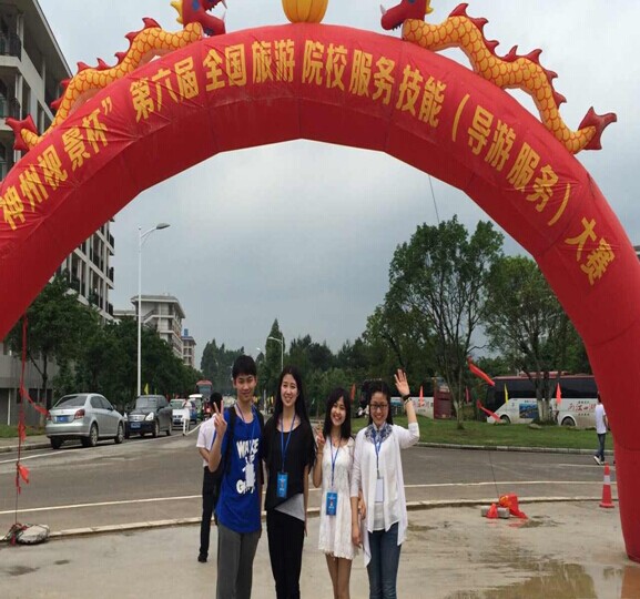 2014年5月9日,金沙js9线路中心旅游管理学院团委第七届导游风采大赛中刘洋诺文、常月、蔡曦雨、陈相如四名选手脱颖而出,代表我院参加六届全国旅游院校服务技能大赛。第六届全国旅游院校服务技能(导游服务)大赛于5月9日―12日在桂林旅专举行。大赛设高等院校组(含本科、高职高专院校)、中等学校组(含中专、中职、中技学校)2个类别,由普通话讲解服务、英语讲解服务(限高等院校组)2个赛项组成。比赛由综合知识理论考核、景点讲解(现场)、才艺展示三个部分组成。比赛中,各位选手各显神通,纷纷拿出看家的本事,其中,小将刘洋诺文以一口漂亮的英式英语荣获英语组一等奖,常月和蔡曦雨分获汉语组三等奖,陈相如获得英语组优胜奖。此次比赛,四名选手表现优异,向全国导游院校的师生展示了金沙官网学生的风采。也是对金沙官网教学成果的肯定。