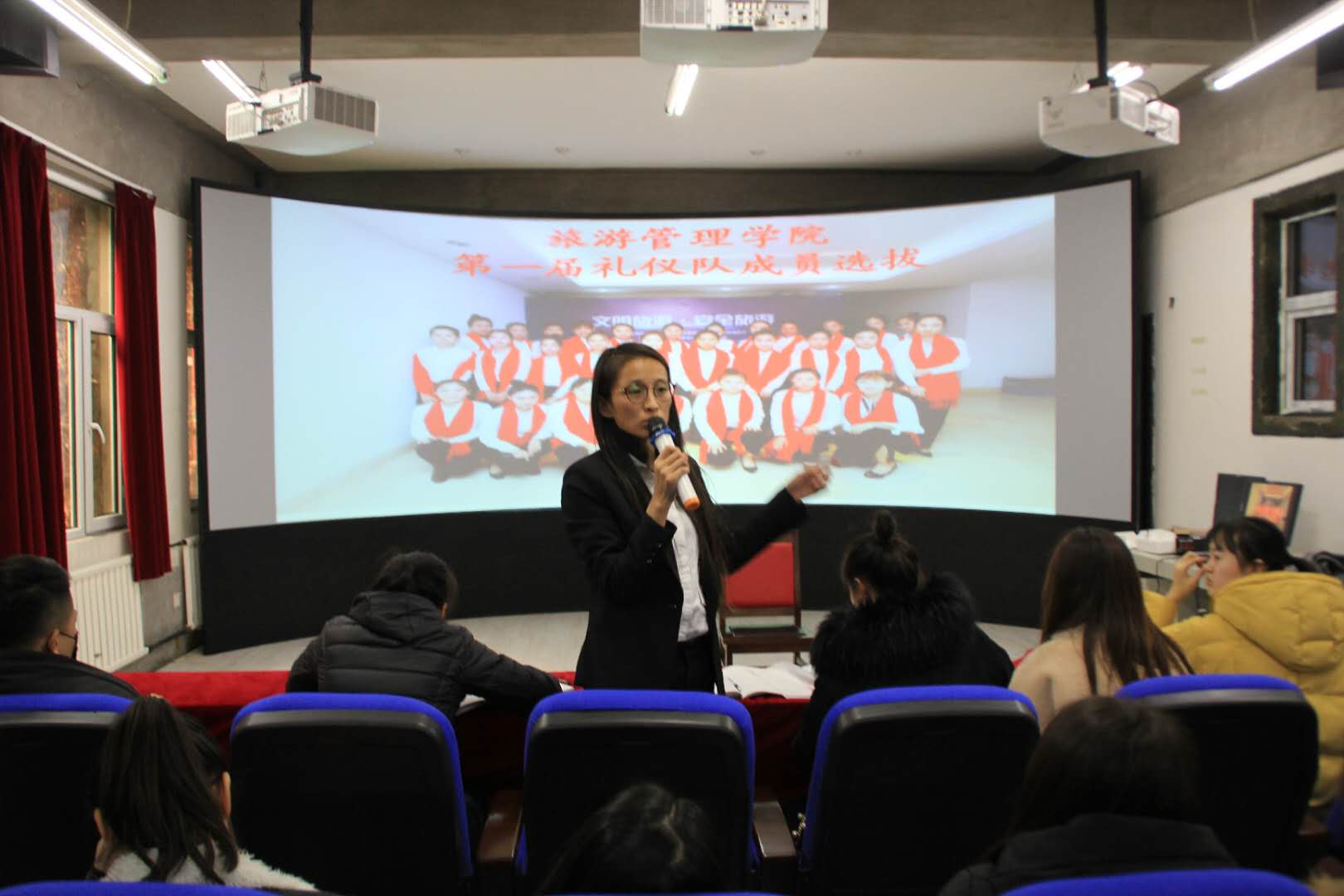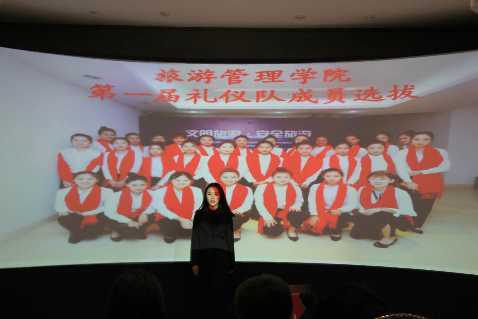 2017年11月28日旅游管理学院在119教室举办了“第一届礼仪成员选拔”活动。本次活动的评委是旅游管理学院团委书记孙丽影老师、17级辅导员王家姝老师以及旅游管理学院团学组织的主席、部长们。