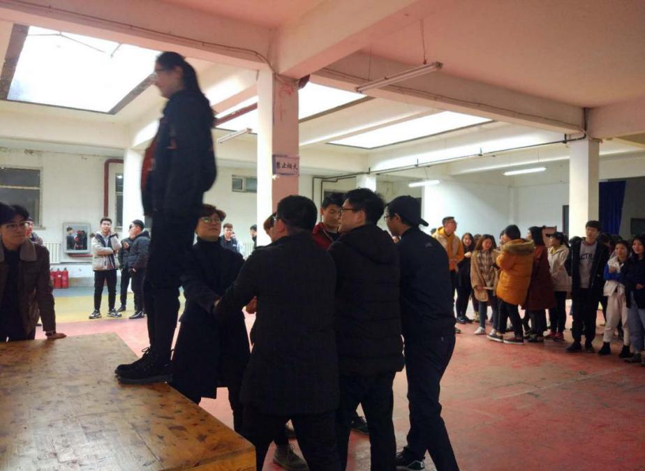 为培养大学生团结活动进取精神,促进同学们之间的交流,旅游管理学院16级同学于3月20日在大学生活动中心举办以“团结·友谊”为主题的素质拓展训练比赛。通过前期的积极宣传及组织,各班班委在本班挑选出实力雄厚的选手,最终参加本次活动的共有7支队伍,旅行社9—12班、景区1班、2班、专科班。比赛分为三个环节:一、我躺你接;二、一箭穿心;三、多人围坐。每个环节的难度都很高,需要队员的密切配合,互相帮助才能完成。虽然在一开始大家有些手忙脚乱,不知道如何才能更好的配合队友,但是所有的参赛人员都大极想办法完成任务,经过队员们的齐心协力,最终过了难关。