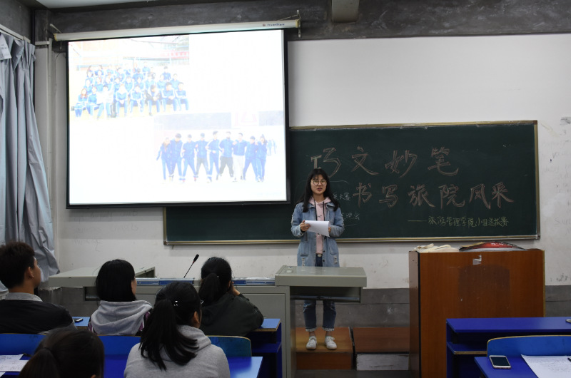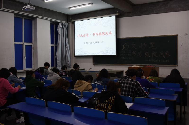 ——旅游管理学院简报小组选拔赛决赛2018年4月18日晚7时,“巧文妙笔·书写旅院风采”旅游管理学院简报小组选拔赛决赛,于教学楼208教室顺利拉开帷幕,本次大赛历时一周,共有我院312名同学热情参与,经过前期的海选,共有初同等20名同学脱颖而出,成功晋级本次决赛。团学组织主席团及部分学生干部出席了本次大赛。