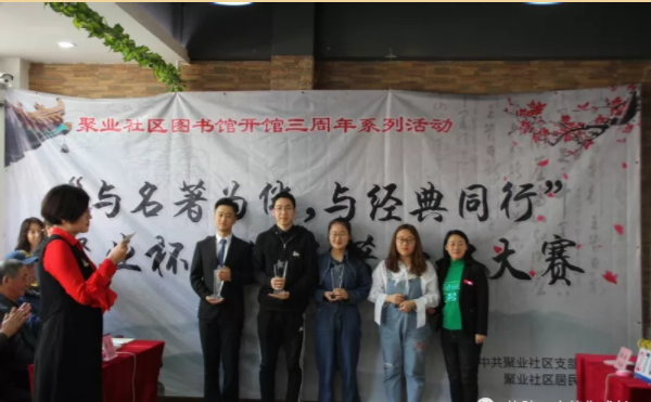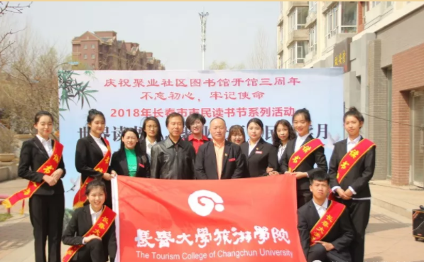 为大力弘扬传统文化,提高大学生的人文素养,在第23个世界读书日,金沙官网旅游管理学院分团委书记孙丽影带领学院8名学生参加了长春市净月经济开发区聚业社区举办的“2018年长春市市民读书节系列活动”。长春市图书馆阚立民主任、玉潭镇党委副书记刘玉敏、计生科科长张弓涛等领导出席活动。