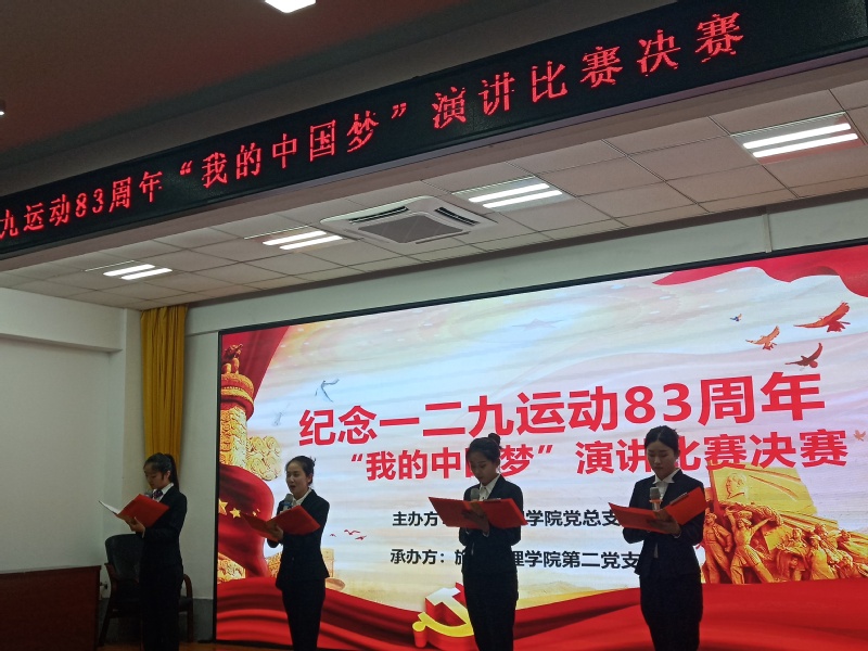 为进一步引导广大青少年学生深刻领悟与“一二·九”精神,坚定理想信念,构筑精神高地。12月09日下午14时,纪念一二·九运动83周年暨我的中国梦主题演讲比赛,在教学楼247教室隆重举行。
