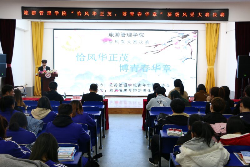 为打造优良学风班级,营造助力学生成长成才的文化氛围,展现班集体积极向上的精神风貌。3月27日午时,旅游管理学院在教学楼二楼筑梦报告厅举办了“恰风华正茂,博青春华章”班级风采大赛,莅临本次活动的嘉宾有我院团委书记蒋森以及各年级辅导员老师们。