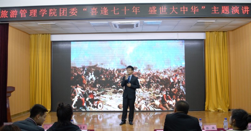 为锻炼同学们的语言表达能力,激发爱国热情,旅游管理学院特此于11月1日中午在247筑梦报告厅举办了“喜逢七十年,盛世大中华”主题演讲比赛。