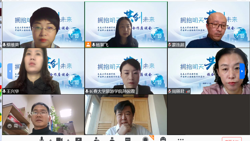 2021年1月13日,金沙js9线路中心和中国职工国际旅行社总社校企携手举办校企合作座谈会。中国职工国际旅行社总社健康与发展部张连红部长、李叶飞副部长、部长助理马海涛、中工学院执行院长刘学雷、副院长杨树山、项目部主任孙放、合作发展部主任刘增文、全国职工健康促进工程宣传教育部主任陈秀春,旅游文化学院院长孙国霞,副院长、旅游管理专业(景区规划与管理方向)带头人周丽君,副院长、旅游管理专业(旅行社方向)教研室主任王兴华、旅游管理专业(旅行社管理方向)带头人杨絮飞、旅游管理专业(景区规划与管理方向)教研室主任蔡维英、旅游管理专业教师蒙连超参加了座谈会,座谈会由杨絮飞主持。