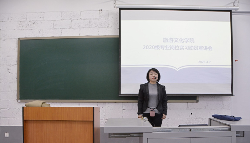 4月7日旅游文化学院旅游管理专业岗位实习动员宣讲会在345教室召开,旅游管理专业2020级本科及2021级导游专科学生参加了实习动员宣讲会。宣讲会由旅游管理专业带头人蔡维英教授进行说明讲解。