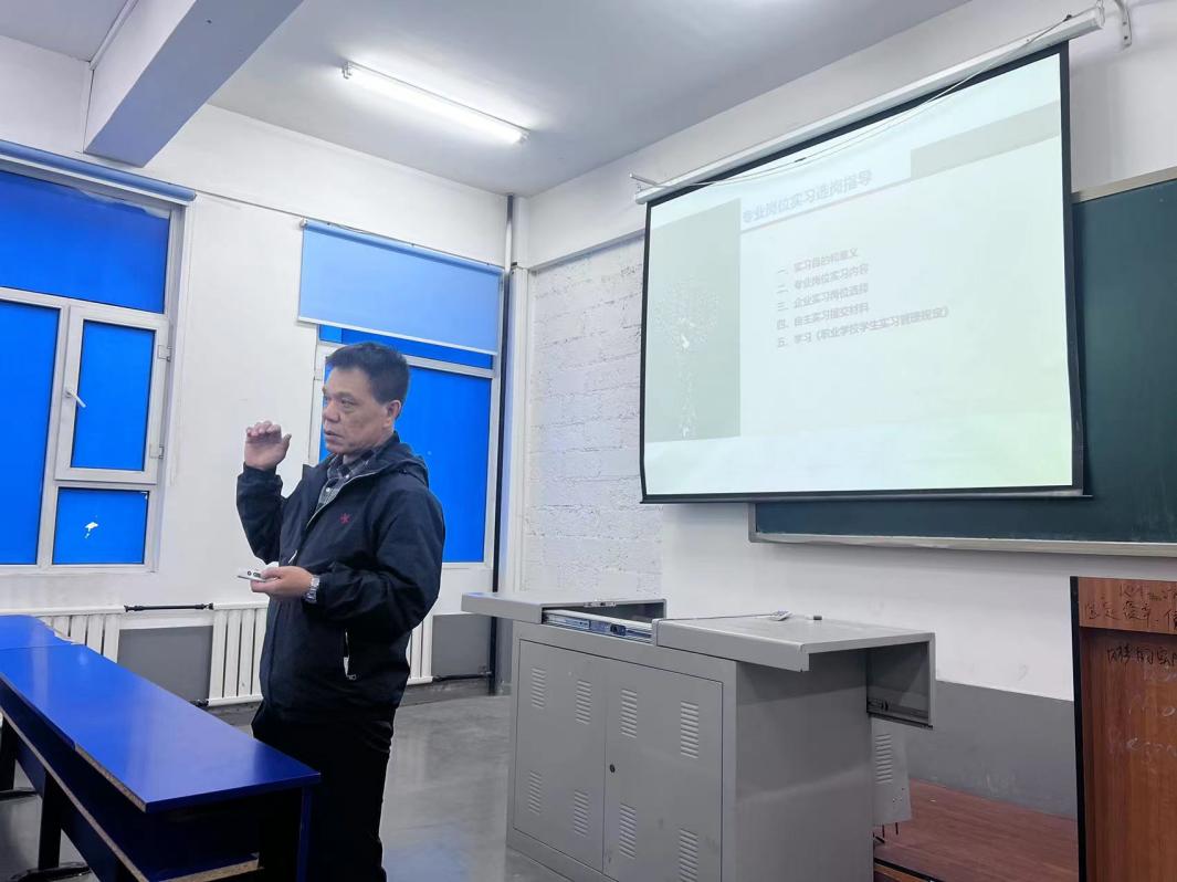 张春城首先针对实习的目的及意义进行了详细的讲解,从实习管理规定的角度出发,分析了岗位性实习的重要性,并提醒同学们在实习过程中要注意实践能力的培养以及经验的积累,从而达到立德树人、德技并修的目的。