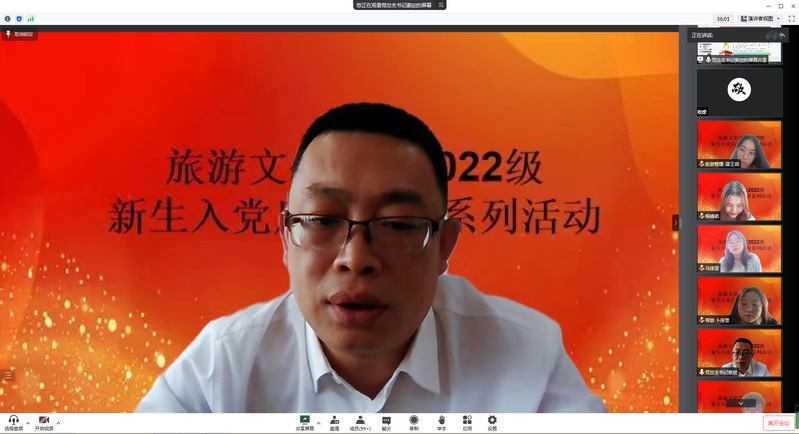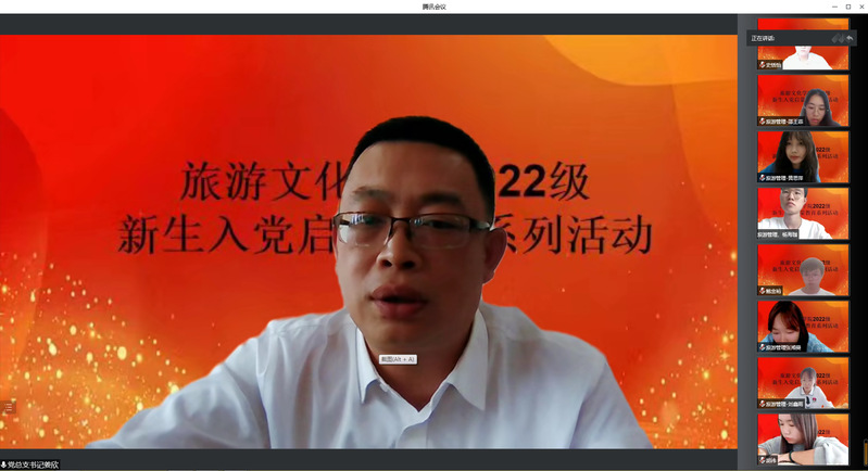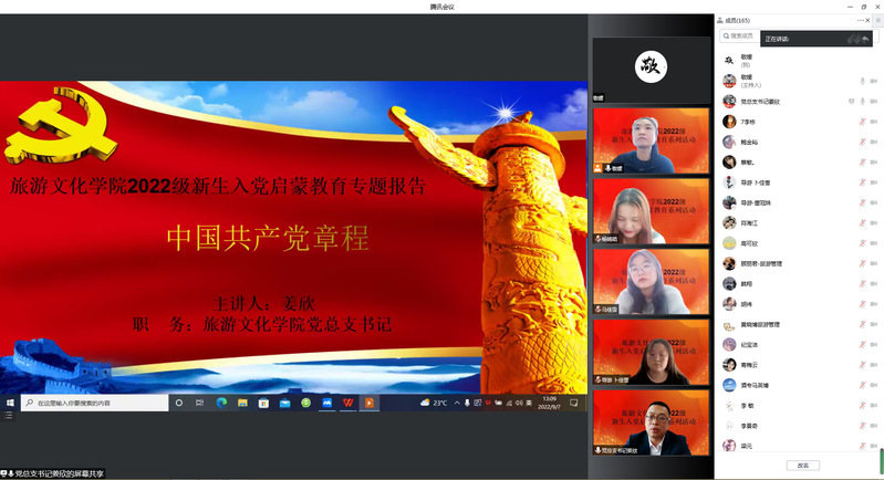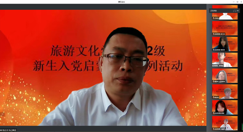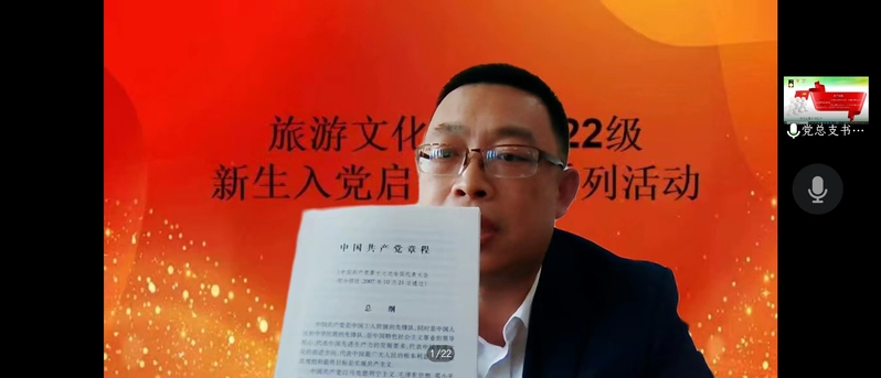 为进一步落实习近平总书记系列重要讲话始终贯穿着学习党章党规、遵守党章党规、严明党的纪律规矩的要求。帮助新生了解党的基本知识、基本理论端正入党动机,增强党在青年学生中的吸引力和凝聚力。6月7日,旅游文化学院党总支召开2022级新生入党启蒙教育动员大会暨党课第一讲,会议由党总支书记姜欣主持,新生辅导员敬嫒、刘红远和全体新生参加会议。