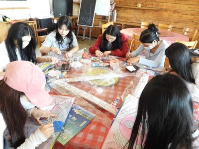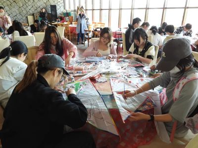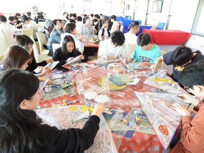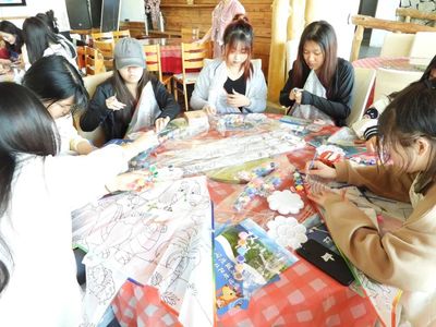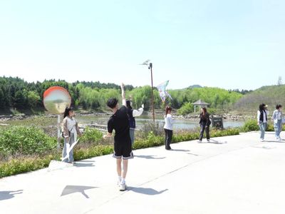 为提升学生们的体验感,使学生亲身参与到活动中来,工作人员精心准备了各式各样的手绘DIY风筝材料,为学生们提供了一个尽情发挥创意的舞台。同学们各展其才,欢声笑语不断,热闹欢乐的氛围感染了在场的每一位人员。一个个鲜艳的风筝飞上蓝天,放飞的不仅是风筝,也是一颗颗对旅游事业充满希望的新星,最后,工作人员热情的向学生们介绍了缘山湖采摘园中种植的蔬菜水果,科普了植物种植的相关知识,并且邀请同学们品尝。