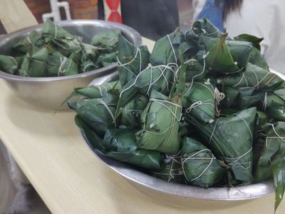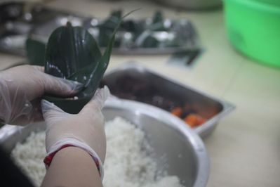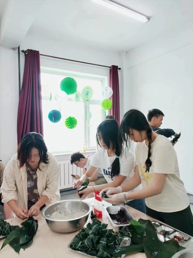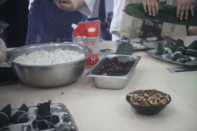 最后,大家一起品尝了自己亲手包的粽子,“碧装束裹三角尖,玉带一缕腰间缠。未解罗裳清香送,无限诱惑在里边”,软糯香甜的粽子让大家赞不绝口。特别感谢为本次活动辛勤付出的三食堂巴蜀印象工作人员!