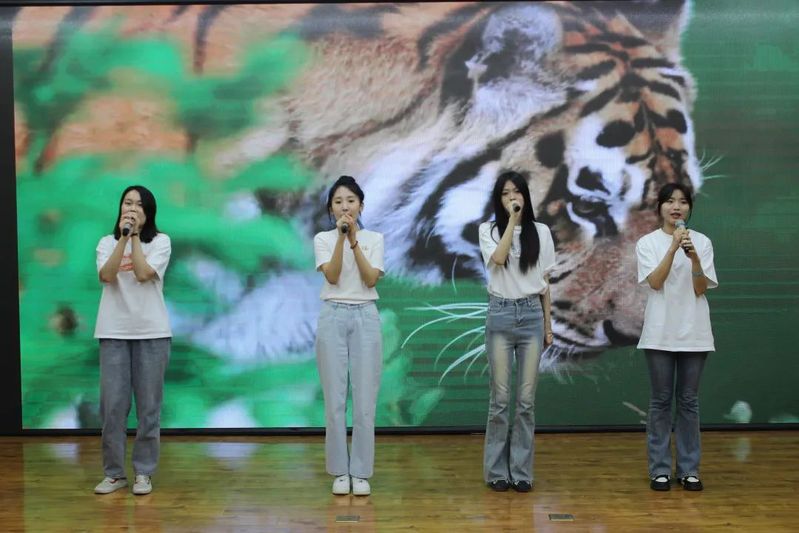 随后,同学们通过观看虎豹特别纪录片,领略到东北林海的苍茫浩渺、虎豹的气魄摄人,使很多同学积极参与到活动中,通过才艺展示获得了中国绿化基金会提供的虎豹项目奖品。