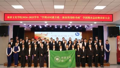 为进一步营造良好的育人氛围,表彰先进典型,发挥榜样引领示范作用,激励青年学生奋发有为、勇于拼搏、开拓创新,12月18日,旅游文化学院在大学生活动中心召开2024-2025年度第一学期“学期末时载丰收,新征程处盼功成”学团期末总结暨表彰大会。旅游文化学院党总支书记凤龙、团委书记兼学生工作办公室主任,24级辅导员老师张锦华及辅导员英冀老师、敬嫒老师、刘红远老师、车思路老师、张冰洋老师出席本次大会,团学组织全体成员、以及部分24级同学参加本次活动。
