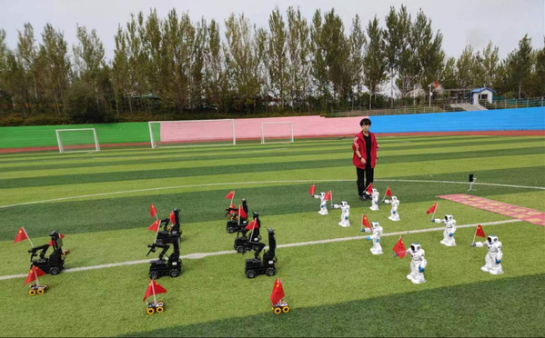 为庆祝即将到来的国庆节,物联网工程专业双创兴趣小组积极参与了学院组织的“AI机器人迎国庆”录制活动,为这个特殊的时刻增添了科技的魅力。该活动于9月26日在学院的108机器人实训室和室外足球场举行。专业教师杨璐老师带队指导,参与同学展现出了出色的创新能力和团队合作精神。