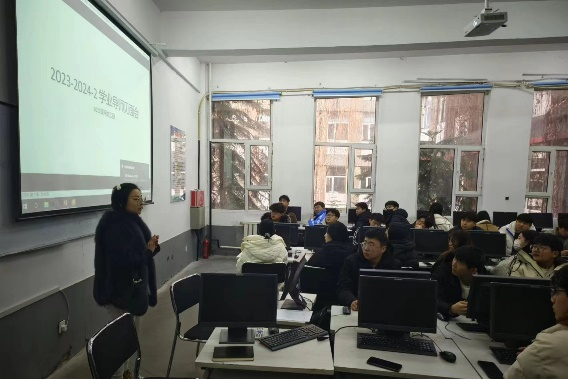 刘玮老师在23级网络工程学业导师会议中引导同学们要尽量做好大学期间的学业规划,以及鼓励每位同学要为自己树立学期学习小目标、技能小目标等。