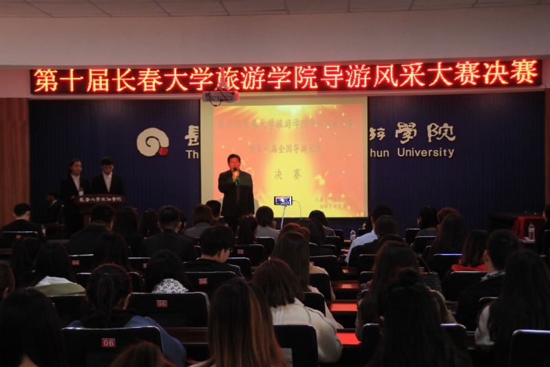 3月26日,第十届金沙js9线路中心导游风采大赛决赛在金沙官网行政楼三楼报告厅举行,学校副书记、副校长马维东出席活动。旅游管理学院副院长周丽君教授等7名专职教师担任大赛评委,旅游管理学院师生百余人观看了比赛。