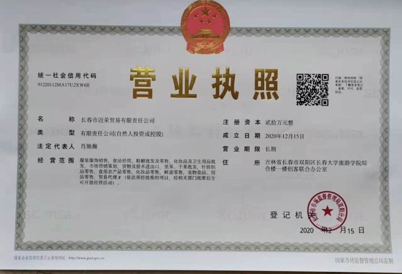 我院学生成立长春市迈荣贸易有限公司(学生创业企业)