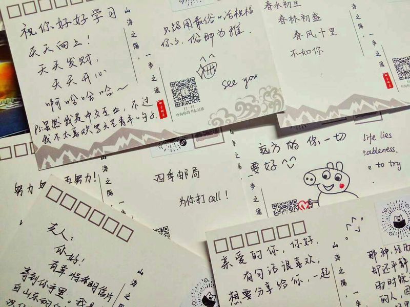 2.动参与者还可以在全国主办方“山海遥”微信公众号后台查询自己寄出的明信片被哪所高校的同学收到,以及你收到的是来自哪所高校同学的明信片,并获知其联系方式,与其展开书信来往或线上交流。