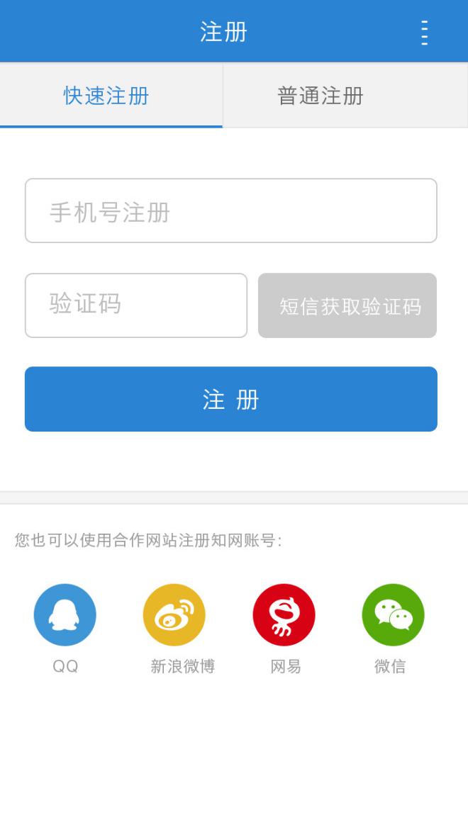 如果没有知网账号,可以在注册页面进行注册,注册方式有两种,一种是与网站相同的方式,需要输入用户名、密码、邮箱等信息。另外一种就是手机快速注册,通过手机发送验证码的方式进行注册。