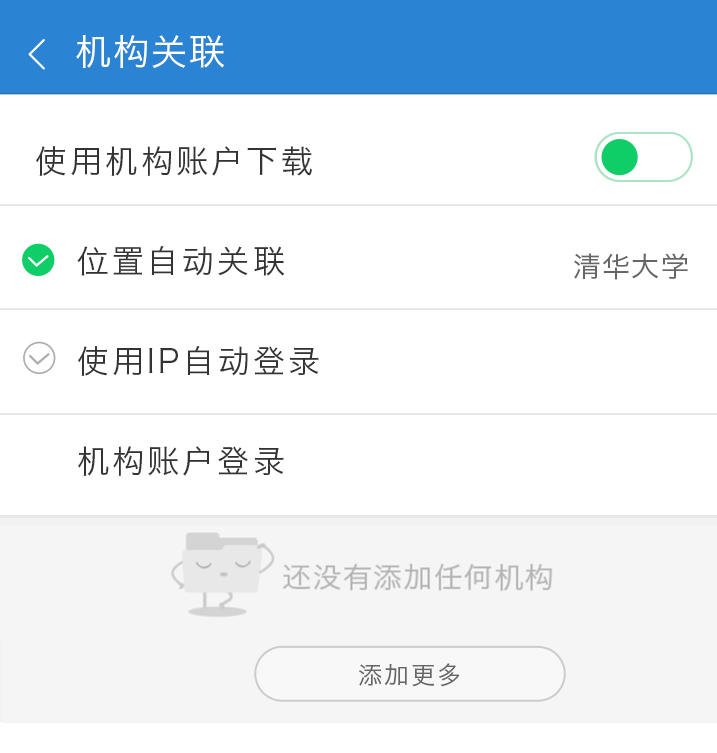 用户登录以后关联机构,就可以通过机构账号的权限下载文献,文献自动进入下载列表。