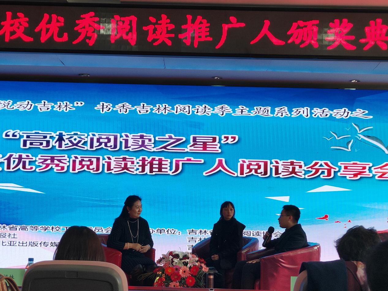 在“高校阅读之星”吉林省高校优秀阅读推广人阅读分享会上,优秀阅读推广人代表吉林大学李龙教授和长春工程学院王勇老师,“高校阅读之星”代表北华大学魏仕俊同学和吉林华桥外国语学院谭艳梅同学,现场分享了各自的阅读经历。他们不仅热爱阅读,受益于阅读,更积极参加学校和图书馆组织的各项阅读活动,并带动身边的同学一起阅读。分享者们以深厚的文化底蕴、丰富的读书经历,让在场的观众感受到了阅读之美。