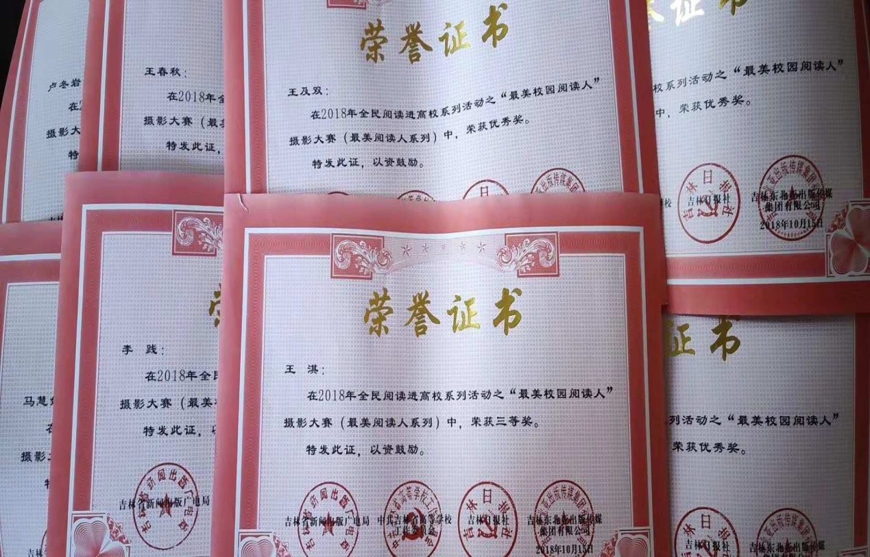 11月20日下午,由中共吉林省高等学校工作委员会、吉林日报社、吉林东北亚出版传媒集团有限公司主办,吉林省全民阅读协会、吉林手机报社、吉林省外文书店、长春工业大学承办的2018全民阅读进高校系列活动之“最美校园阅读人”摄影大赛颁奖仪式暨获奖作品展在长春工业大学南湖校区图书馆一楼大厅举行。