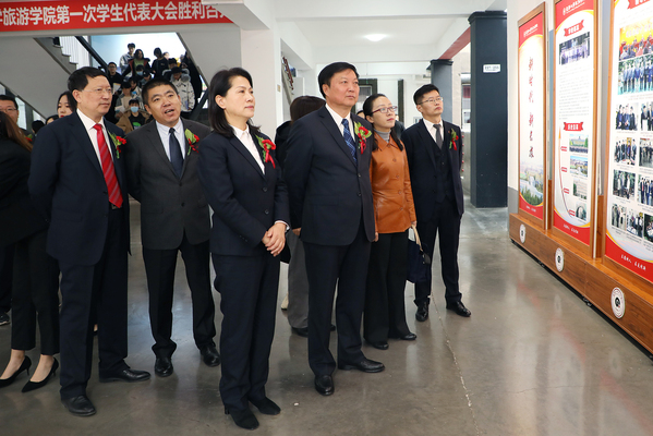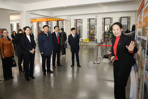 活动期间,吉林省图书馆领导一行在校领导的陪同下参观了“新时代新长旅”办学成果展;在筑梦报告厅,共同观看了《诗与远方·筑梦长旅》学校宣传片;听取和现场考察了学校分馆建设情况以及未来规划发展情况。