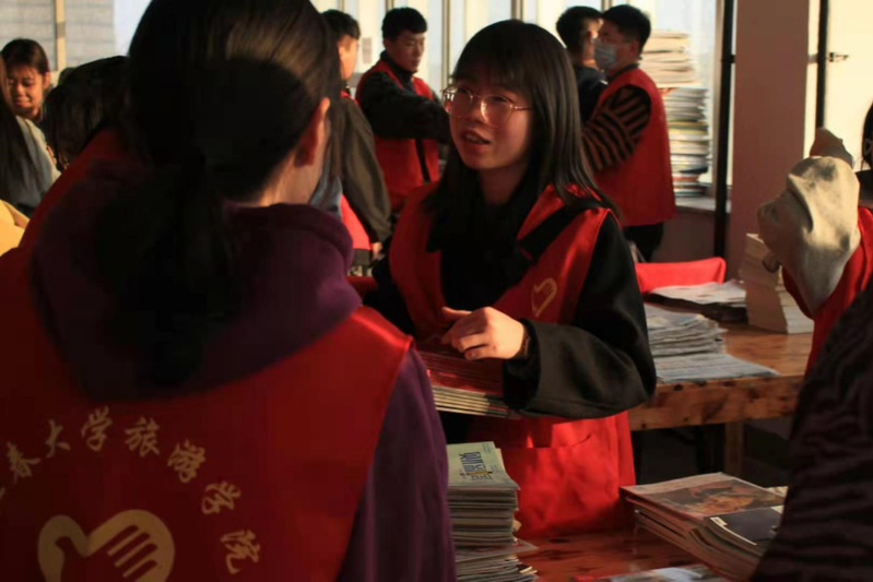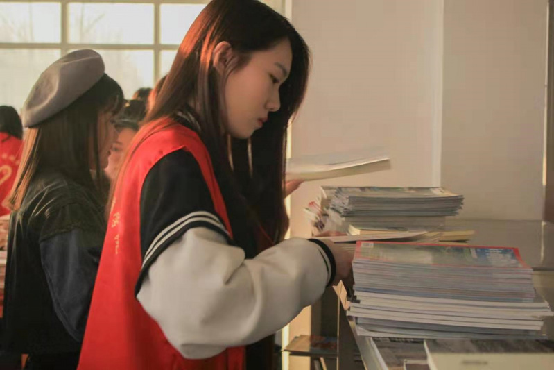 在图书馆老师的带领下,志愿者们主要负责书籍编号分类和环境清扫两方面的工作。志愿者们十人一个小组,细心分类、分工协作、相互配合,将书籍按编号放入书架。同学们认真工作的态度得到了图书馆工作人员的高度赞扬。
