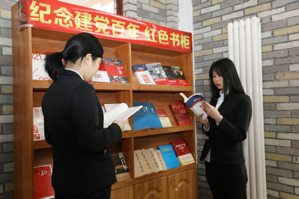 启动仪式后,“书香飘长旅·雅言颂百年”第十届读书月活动正式开始。现场师生到图书馆参观了庆祝建党百年红色图书角,并参加换书大集、图书选购活动。
