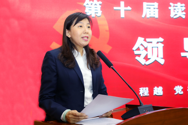 首先程越致辞,她表示,2021年是中国共产党成立100周年,是全面开启建设社会主义现代化国家新征程、向第二个百年奋斗目标迈进的第一年,也是“十四五”开局起步之年。开展读书月这项活动,对推动书香社会建设,营造良好文化氛围,凝聚强大精神动力具有重要意义。她希望广大师生踊跃参与到读书月活动中来,结合党史学习教育,积极响应习近平总书记“好读书、读好书、善读书”的号召,留一点素心,感受阅读的魅力,守一份初心,探寻文化的力量。并向大家提出几点希望,一要多读书,涵养“好读书”的习惯。二要有取舍,彰显读好书品味。三要会用书,提升善读书能力。
