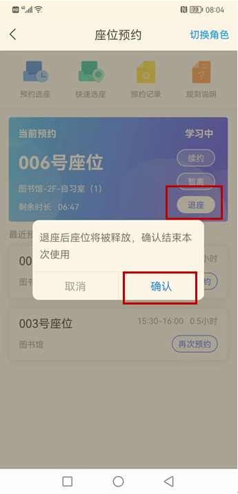 入馆后学习通首页扫描座位号二维码签到