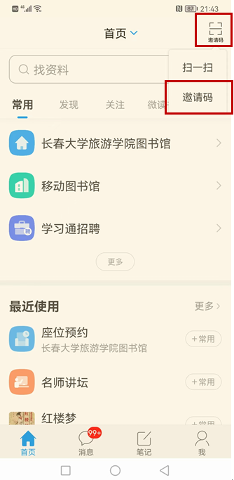 学习通首页输入邀请码:ccdxlyxy