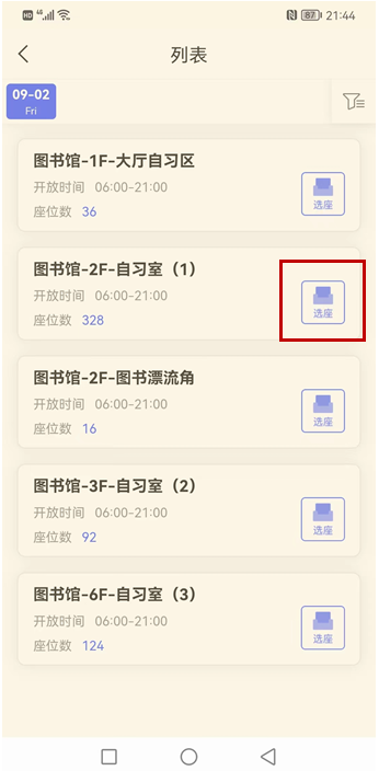选择预约时间、座位号