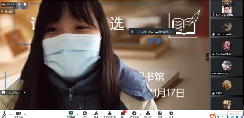 2022年11月17日晚,长旅图书馆组织开展了第三届读者协会换届选举,竞聘会通过腾讯会议举行,一共21名同学参加了竞聘。