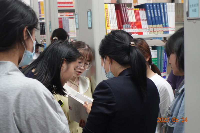 最后大家来到了流通阅览部借阅室,徐俊婷主任详尽地为同学们介绍了图书的排架规则,指导大家如何快速的找到想借的图书。同时,也体验了一次如何将一本图书按其“身份证号”排架,以方便读者按号索书。