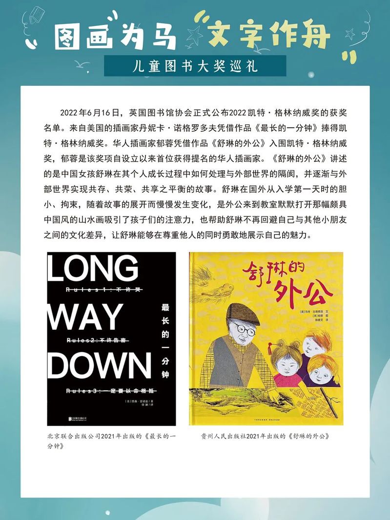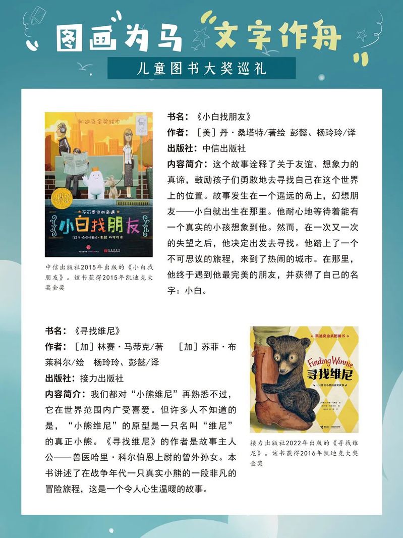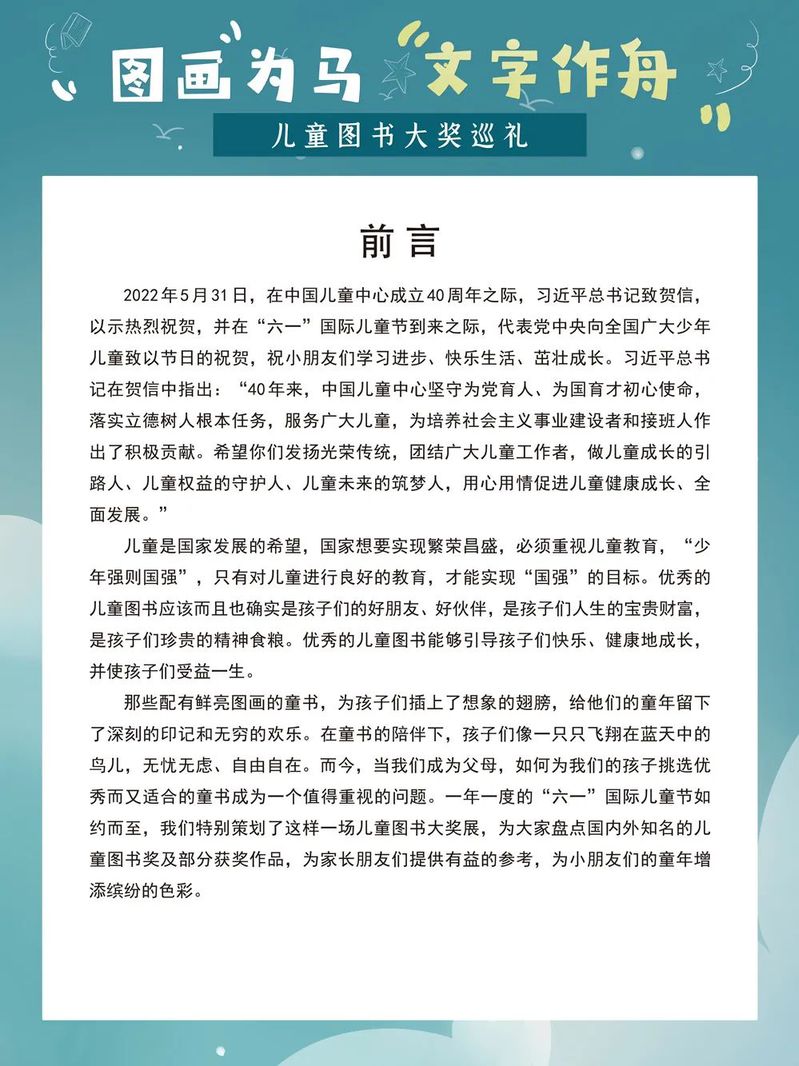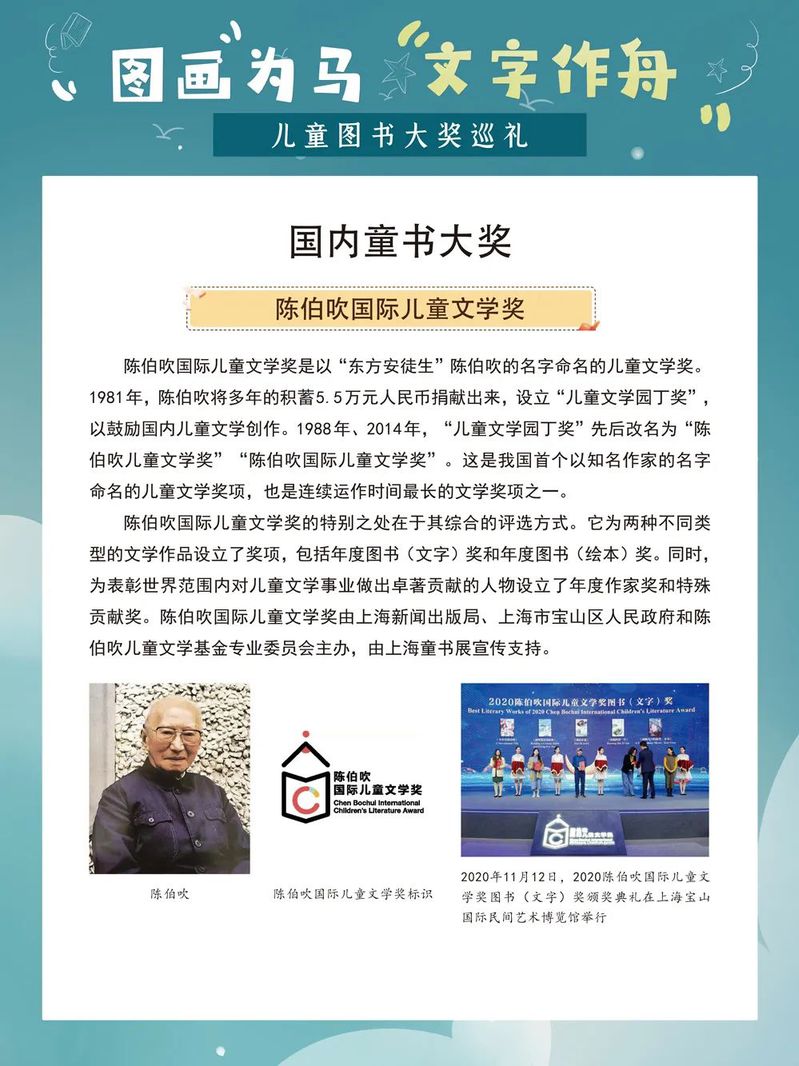 那些配有鲜亮图画的童书,为孩子们插上了想象的翅膀,给他们的童年留下了深刻的印记和无穷的欢乐。在童书的陪伴下,孩子们像一只只飞翔在蓝天中的鸟儿,无忧无虑、自由自在。而今,当我们成为父母,如何为我们的孩子挑选优秀而又适合的童书成为一个值得重视的问题。一年一度的“六一”国际儿童节如约而至,我们特别策划了这样一场儿童图书大奖展,为大家盘点国内外知名的儿童图书奖及部分获奖作品,为家长朋友们提供有益的参考,为小朋友们的童年增添缤纷的色彩。