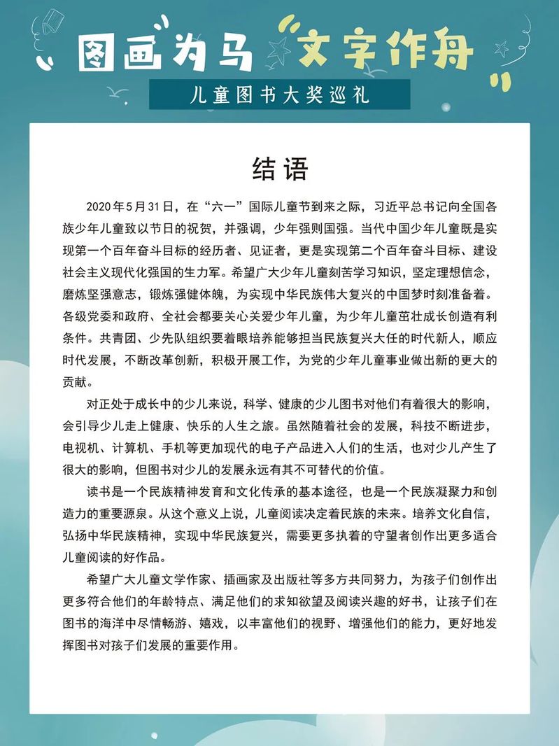 儿童是国家发展的希望,国家想要实现繁荣昌盛,必须重视儿童教育,“少年强则国强”,只有对儿童进行良好的教育,才能实现“国强”的目标。优秀的儿童图书应该而且也确实是孩子们的好朋友、好伙伴,是孩子们人生的宝贵财富,是孩子们珍贵的精神食粮。优秀的儿童图书能够引导孩子们快乐、健康地成长,并使孩子们受益一生。