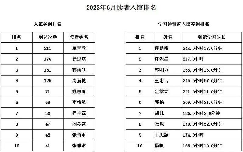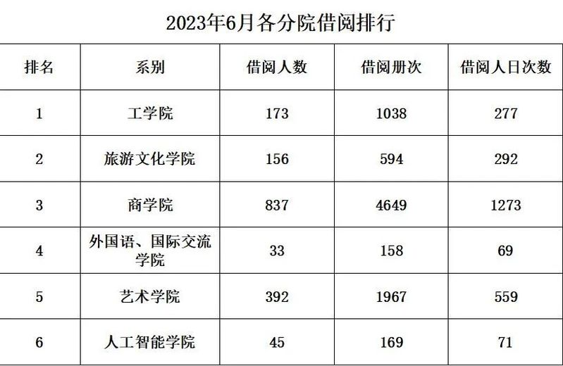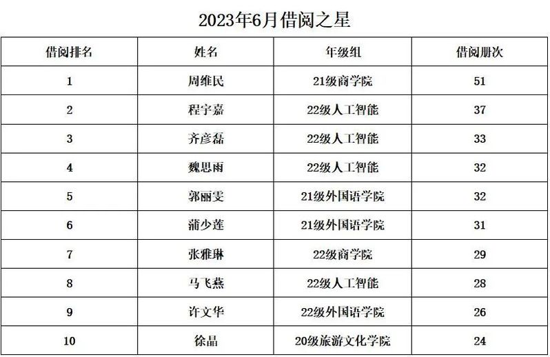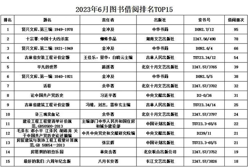 图书馆6月份借阅排行榜