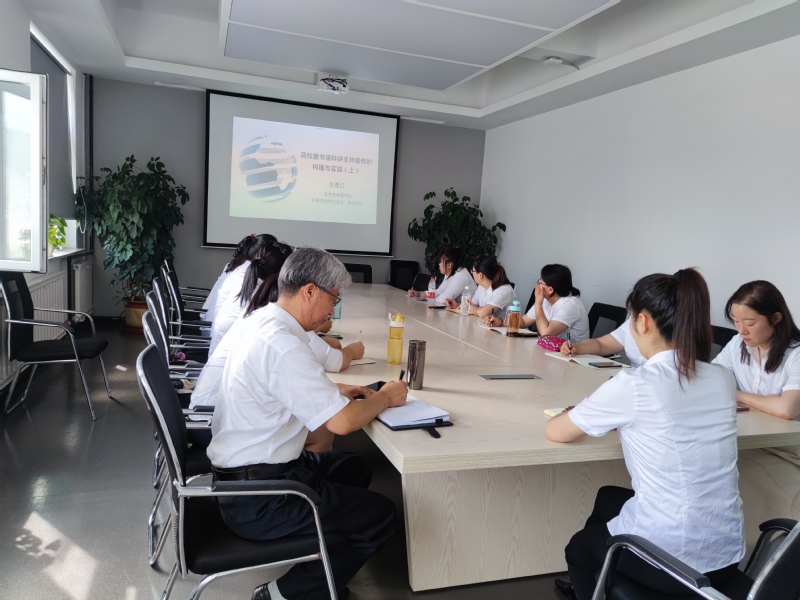 为深入学习贯彻习近平新时代中国特色社会主义思想和党的二十大精神,围绕高等教育发展的新定位、新任务、新要求,充分发挥图书馆在教育教学、科学研究、人才培养、知识传播、文化传承等方面的重要作用,助力高等教育建设。7月12日上午,图书馆组织全体图书馆工作人员学习收看北京大学图书馆科研支持中心主任张春红主讲的《高校图书馆科研支持服务的构建与实践》学术讲座,活动由张星副馆长主持。