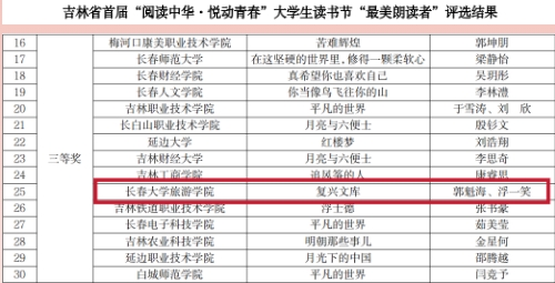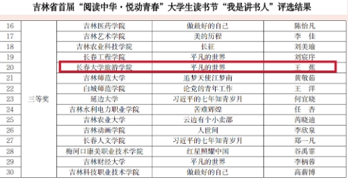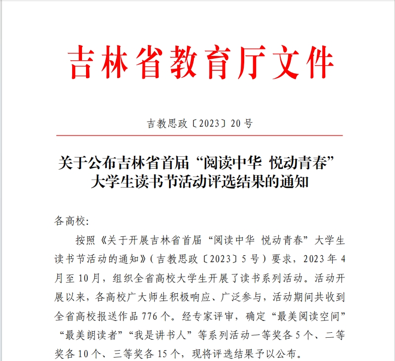近日,金沙官网在吉林省首届“阅读中华 悦动青春”大学生读书节活动中喜获佳绩。